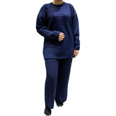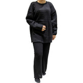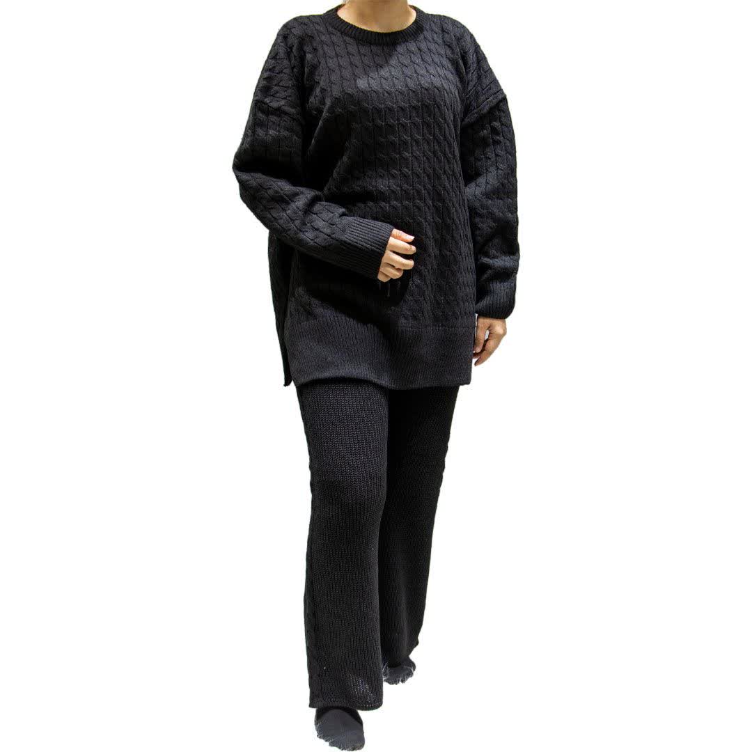 شلوار کشبافت هست و یه نواربافت مارپیچ بغل شلوار کار شده